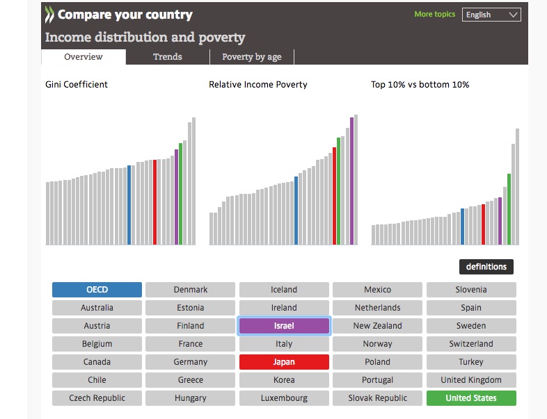 Digging into additional (old) OECD numbers , show the same trends, with Israel being even worse than Japan, and not much better than the US.